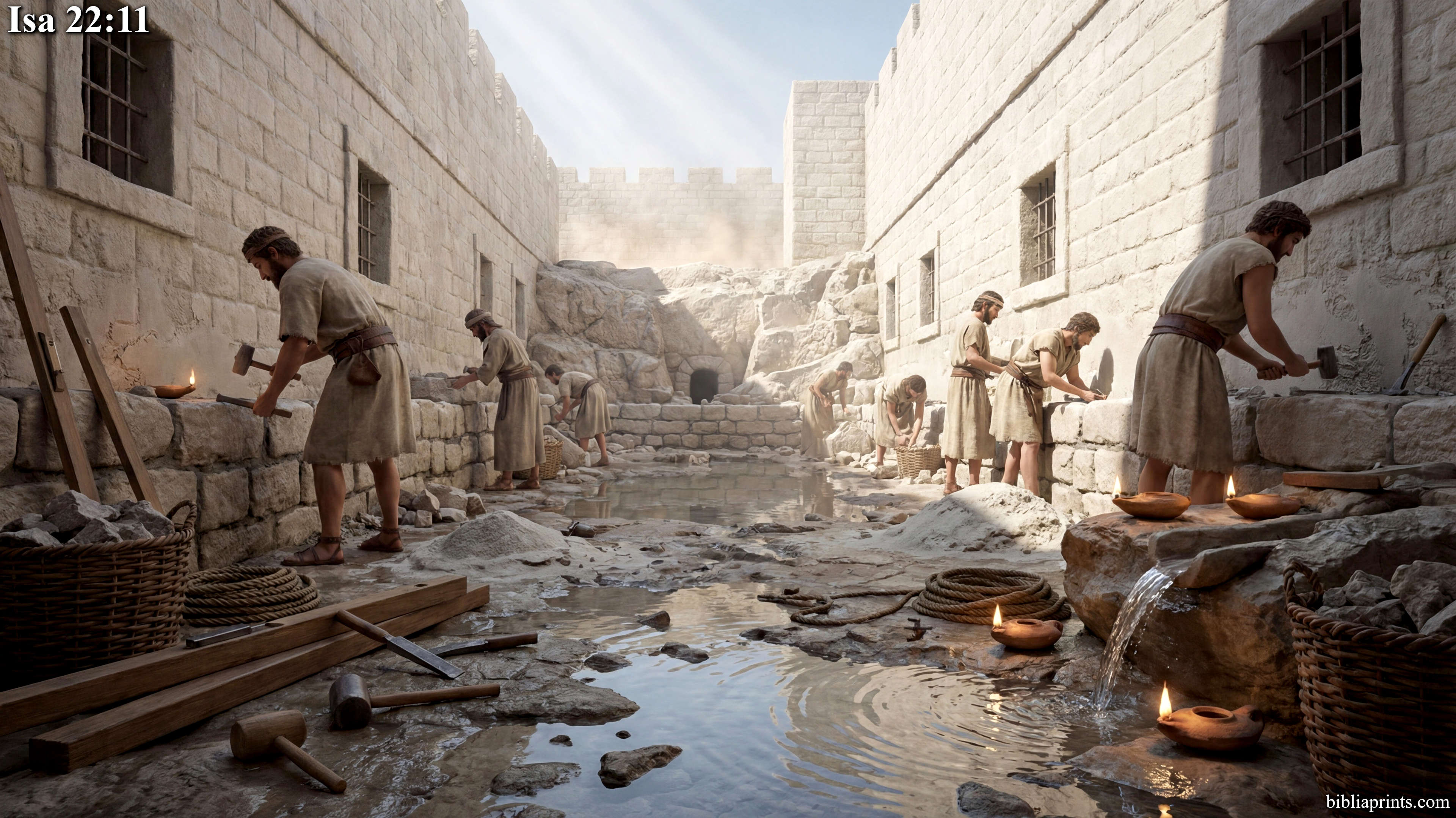 11 Yes, between the two walls, you’ll bring water and send it inside to that ancient pool. But to the One who made it, you’ll still fail to look… to its Creator, you will fail to turn.